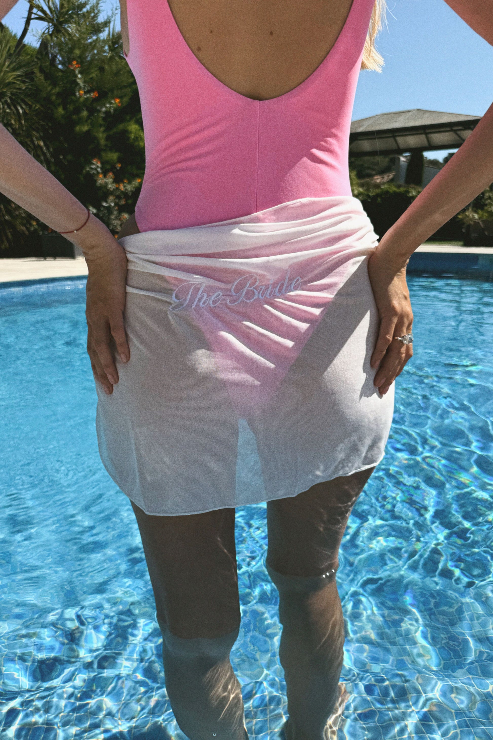 Pareo plażowe z haftem „BRIDE” Delikatnie rozciągliwe, wykonane z poliestru.